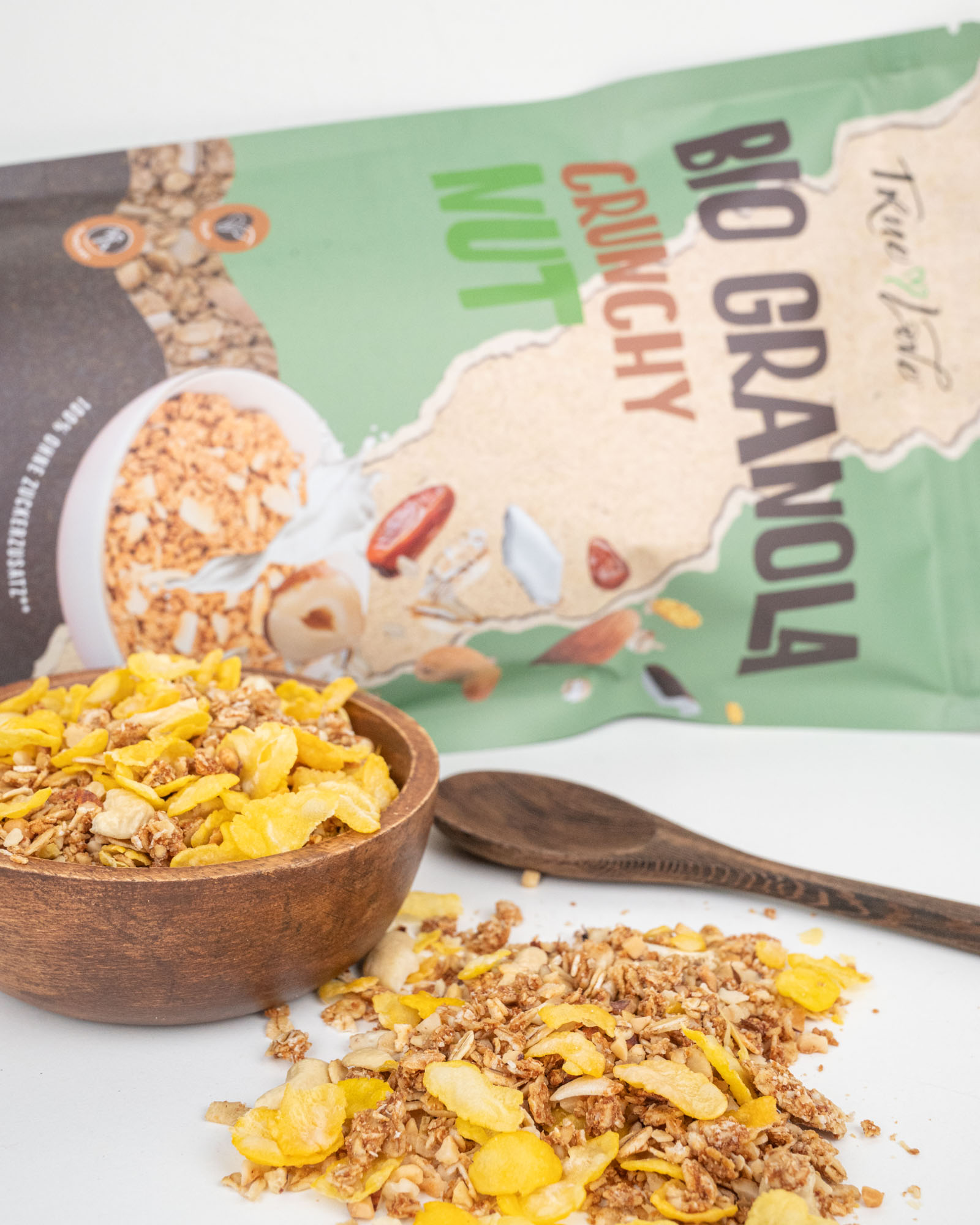 Unser Granola ist nicht nur ein Frühstück oder Snack, sondern ein All-Day-Long Klassiker und steckt voller wichtiger Nährstoffe. Die enthaltenen Haferflocken versorgen dich mit Ballaststoffen und Kohlenhydraten für langanhaltende Energie und on top gibt es gesunde Fette aus der Kokosnuss dazu. Das Beste an unserem Granola ist, dass es unglaublich vielseitig ist, denn ob als Topping für Joghurt oder Smoothie-Bowls oder zum Backen von Müsliriegeln und anderen Leckereien – unser exotisches Knuspermüsli lässt sich perfekt kombinieren.